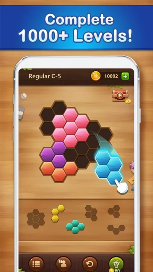 Hexa is as simple yet extremely addicting puzzle game. The goal is to complete the entire board by dragging pieces. Blocks can´t be rotated, and the board changes every level, with different number of rows and columns each time.
