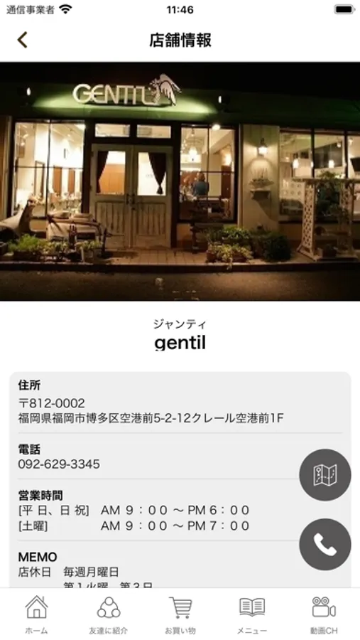 店舗のマップが表示され、地図アプリとも連携しているので、初めてのご来店の時も簡単に見つけることができます。