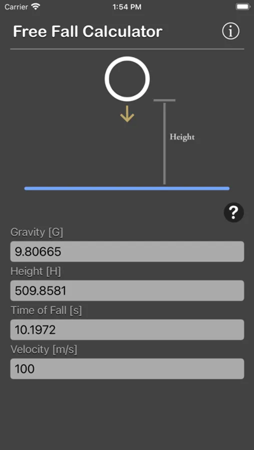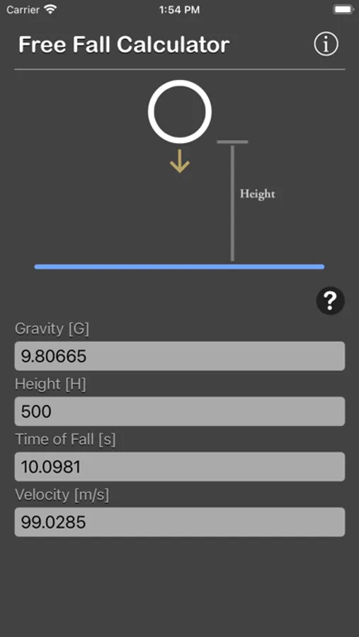 The result will calculate once any input are change, e.g. By input the gravity and the object height, the time travel and velocity are calculate automatically. Same thing happen when you input the velocity, the height/distance and the time travel are calculate automatically.