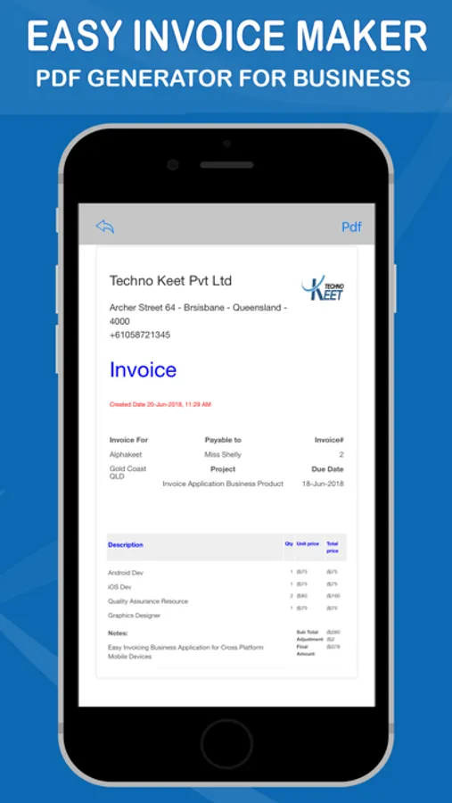 Easy Invoice Maker (EIM) is a very simple invoice PDF generator with fast and really easy to use. Easy Invoice Maker provide a simple and professional business invoicing solution for mobile devices. EIM provides a best and easy invoicing for the Small Businessmen, Business Owners, Contractors, Consultants, Small Offices and Freelancers.