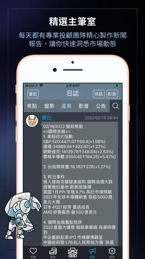 系統陪您看盤,一起上場交易。