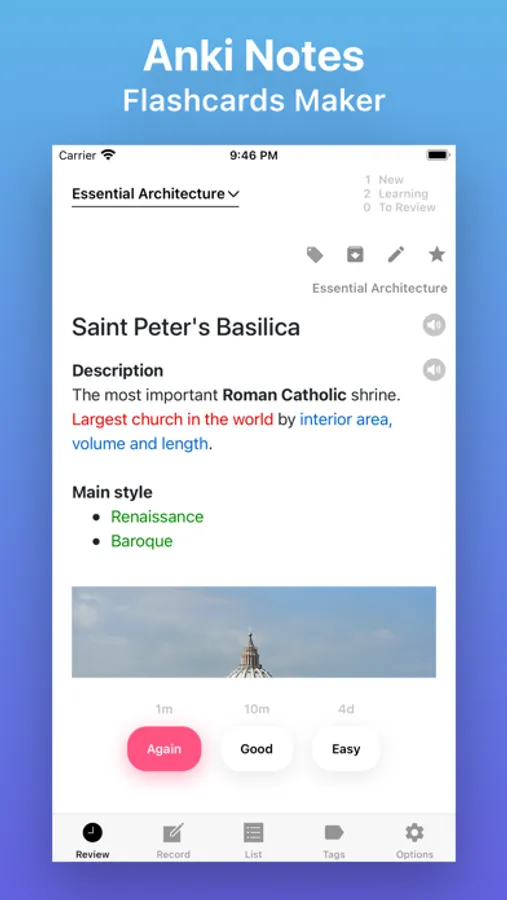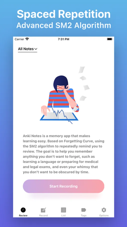 Anki Notes is a memory app that makes learning easy. Based on Forgetting Curve, using the SM2 algorithm to repeatedly remind you to review. The goal is to help you remember anything you don't want to forget, such as learning a language or preparing for medical and legal exams, and even your whimsy that you don't want to be obscured by time.