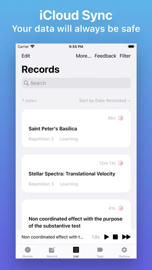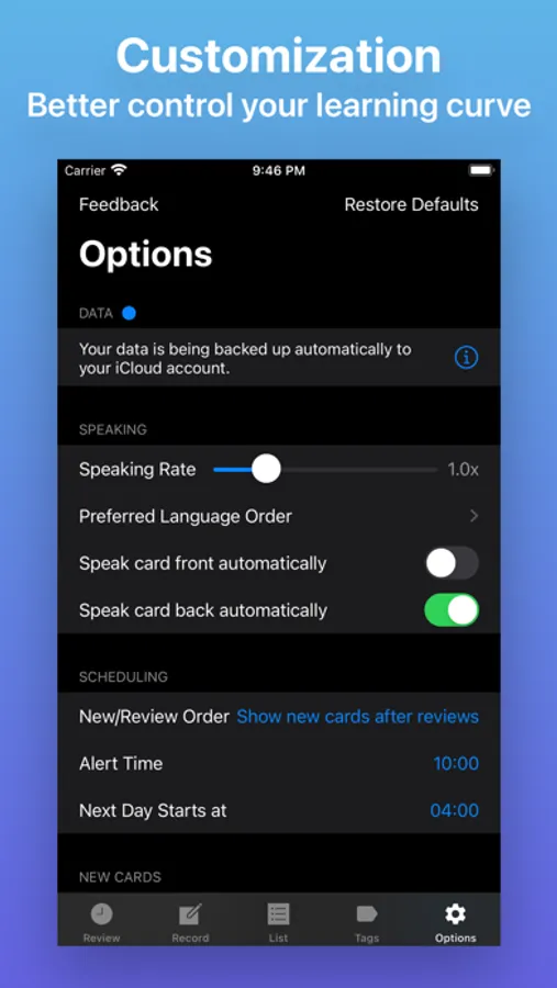 Your data will be backed up automatically to your iCloud account. That means all your stuff — flashcards, tags, preferences, and more — is safe, up to date, and available on all your devices.