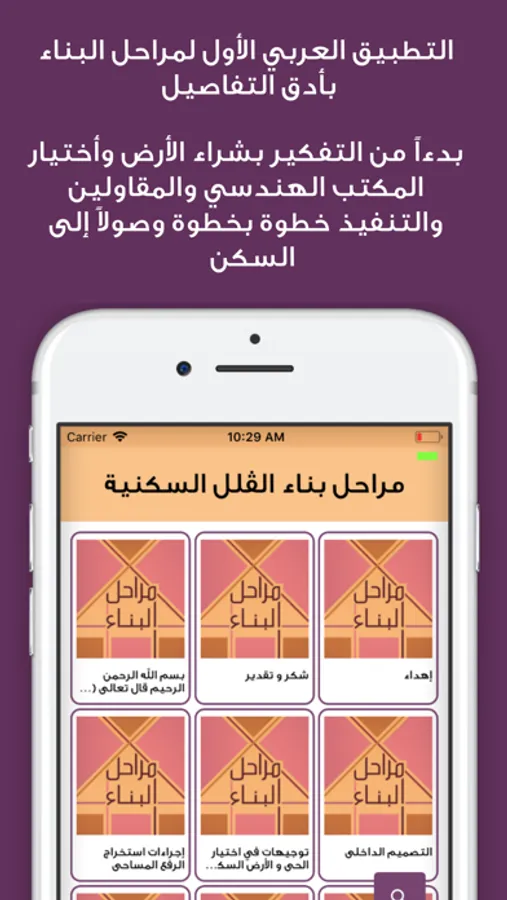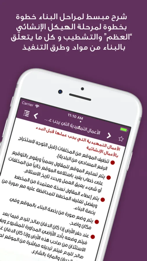 تطبيق متكامل يشرح جميع مراحل البناء بشكل محترف شامل جميع المراحل من عظم و تشطيب ويغطي جميع التفاصيل غني بالشرح و الصور.
