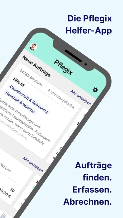 Noch schneller Aufträge in Deiner Nähe finden, Termine mit Familien abstimmen, Stunden für einen Auftrag dokumentieren oder Deine Finanzen im Blick behalten - das alles ist jetzt mit der neuen Pflegix App möglich!