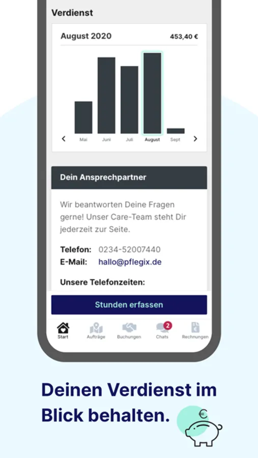 - Stunden unmittelbar erfassen und Verdienst in Echtzeit abrufen