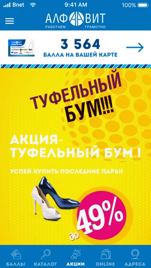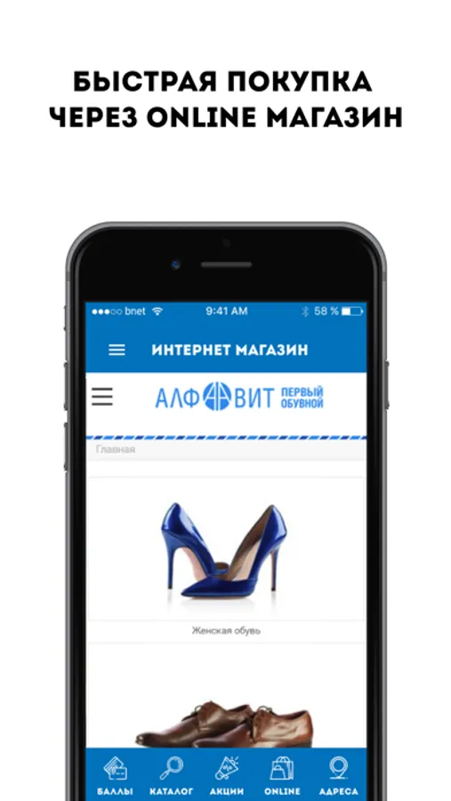 Приложение АЛФАВИТ Обувь для iPhone - поможет Вам подобрать, посмотреть наличие и совершить покупку, как в розничной сети магазинов "АЛФАВИТ", так и в интернет-магазине!