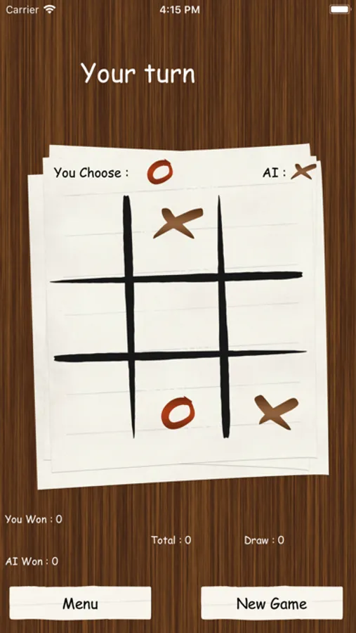 The objective of the game is to create a line of your symbols (crosses or rounds) before your opponent does. The line can be horizontal, vertical or diagonal.