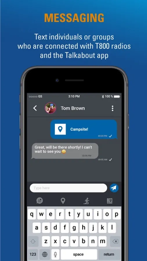 The T8xx series two-way radio work just like every other radio by sending information using radio frequencies to keep you connected while off-grid. The secret to the T8xx series is once your smartphone is connected to your radio over Bluetooth, the TALKABOUT smartphone app enables communication options beyond push-to-talk. The TALKABOUT app uses the T8xx series as modem to send messages, locations and more over the radio frequencies to your fellow T8xx series users. With enhanced communication and more information you enjoy unrivaled connectivity for peace of mind off the cellular grid.