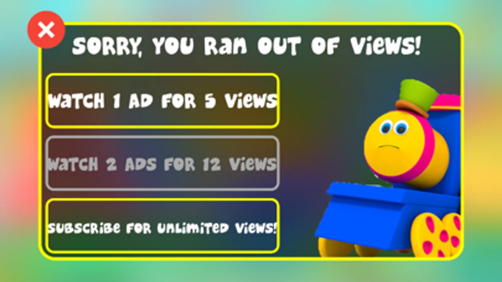 ● Bob the Train Kids TV Cartoons is available for Subscription with 3 options: