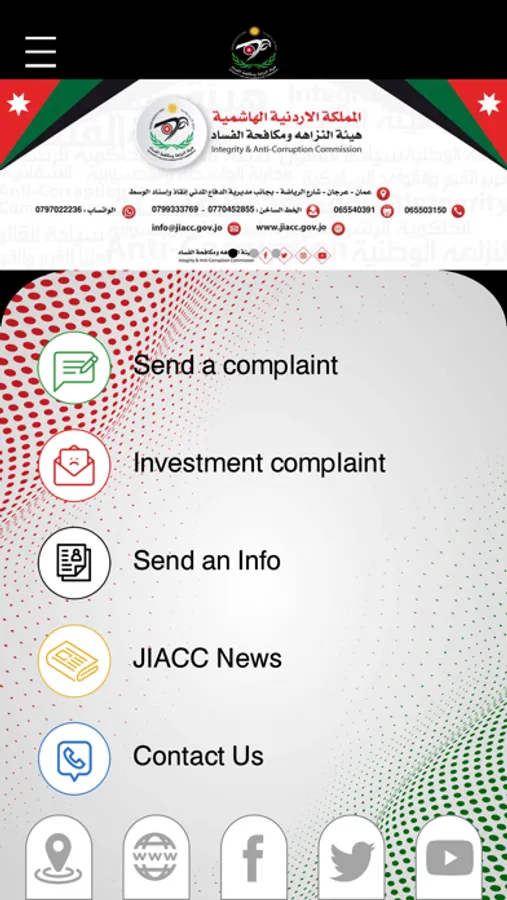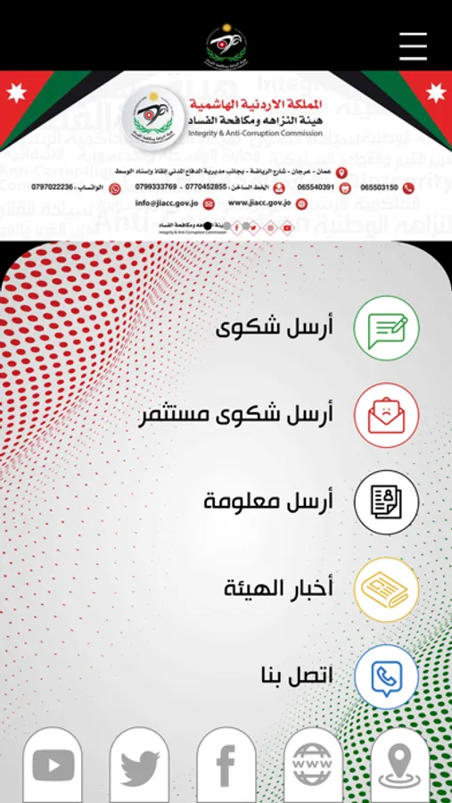 يسعدنا أن نرحب بكم في تطبيق هيئة النزاهة ومكافحة الفساد آملين المشاركة الإيجابية الفاعلة في مكافحة الفساد والوقاية منه ، من أجل الارتفاء في الأداء وتعميق الحس بالمسؤولية ، وتكثيف الجهود في محاربة آفة الفساد وتجفيف منابعه. ولأهمية الدور الذي تضطلع به هيئة النزاهة ومكافحة الفساد فقد أنشئت بإرادة مكلية سامية ، لتعزيز ثقة المواطن بمؤسسات الدولة ، وتوفير العدالة والمساواة ،وتكافؤ الفرص في توزيع مكتسبات التنمية من خلال استراتيجية.