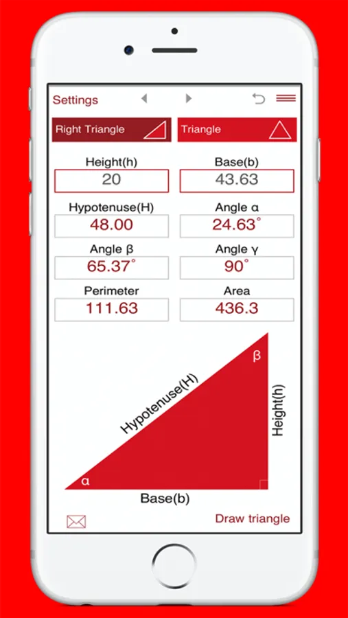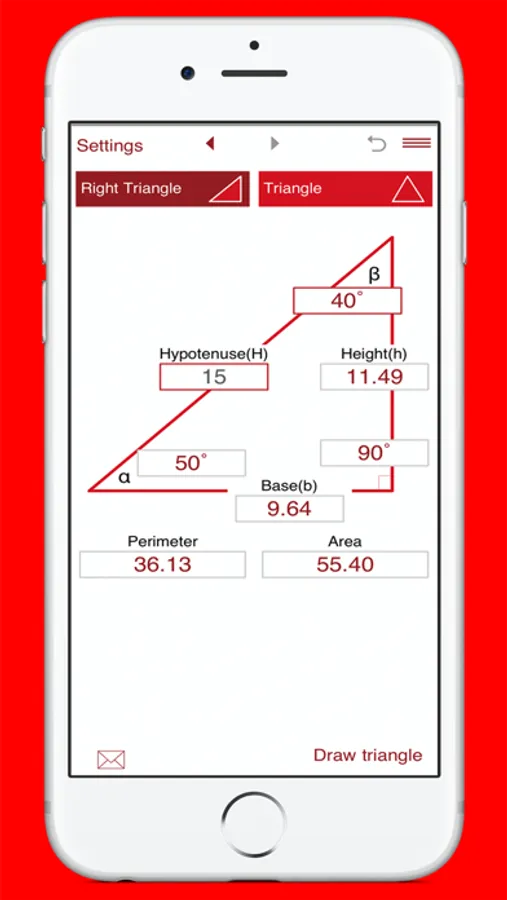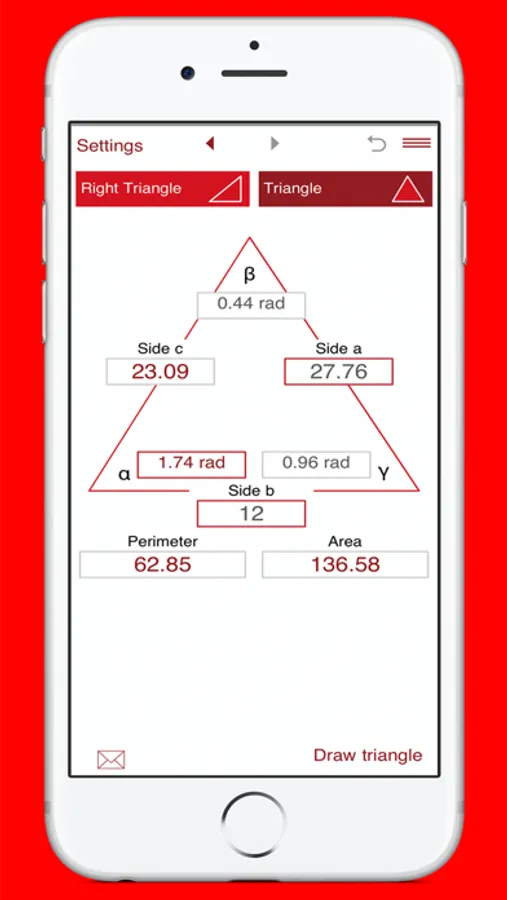 Trigonometry Master is a easy to use app that allows you to quickly calculate unknown sides and angles of any triangle. It will also calculate the area and perimeter and draw the triangle.