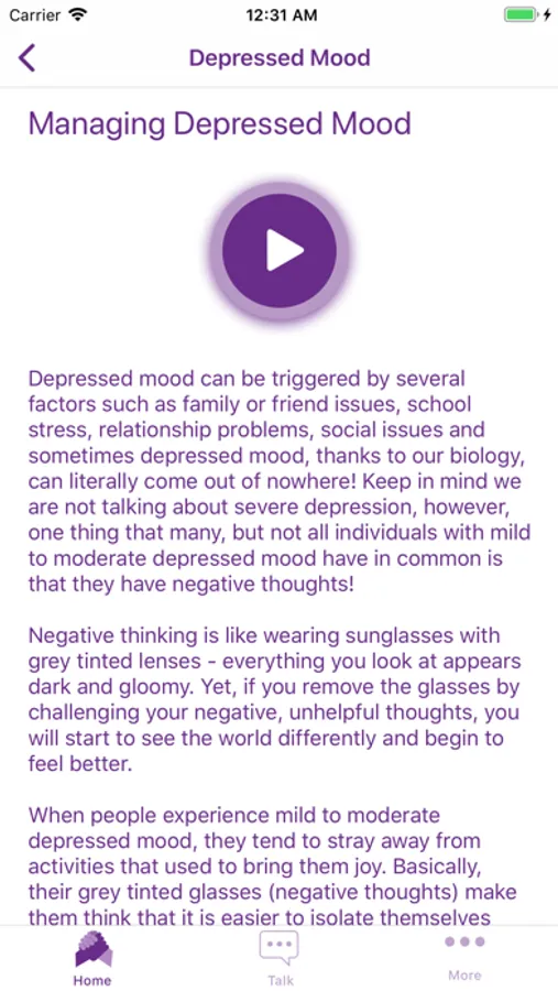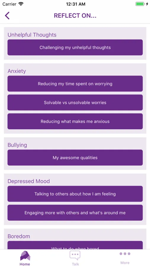 This app helps teens who are dealing with mental health issues including mild anxiety, depression, self harm, and bullying. If a teen is in need of step by step help on dealing with symptoms of any of these, there are help modules to help guide them through these situations. Users can also add journal entries to keep track of their thoughts and processes and there is also a private chat function that users can use to communicate with qualified health care professionals.