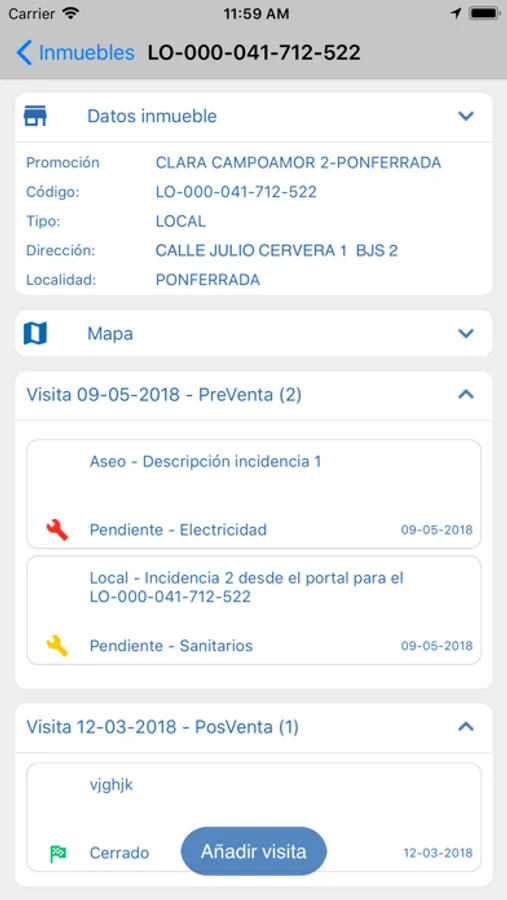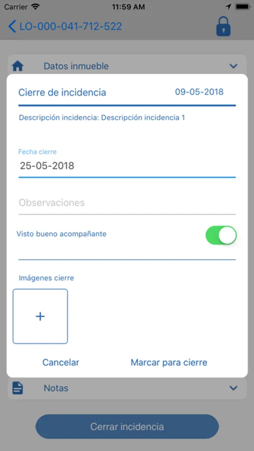 - Crear incidencias preventa y posventa en la misma visita del inmueble de una forma ágil (con fotografías, documentación y conformidad de alta por el cliente) y todo desde un smartphone o Tablet.