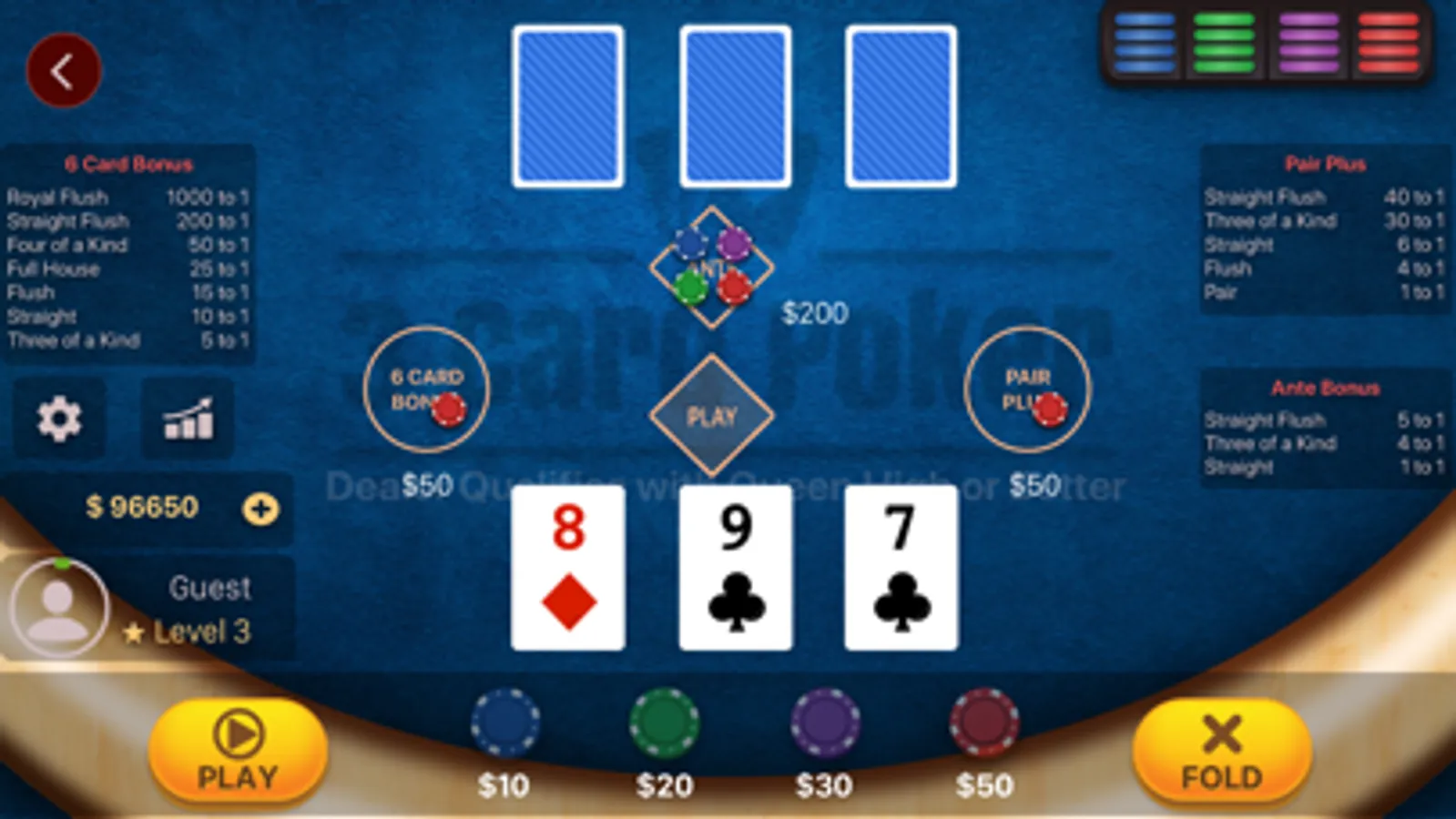 This is an online casino game of 3 Card Poker for iPhone and iPad!