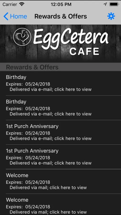 The EggCetera Rewards mobile app delivers offers and loyalty information to on-the-go customers, giving quick access to exclusive deals, enrollment options, loyalty point balance and rewards lookup, loyalty program information, and information about our business-