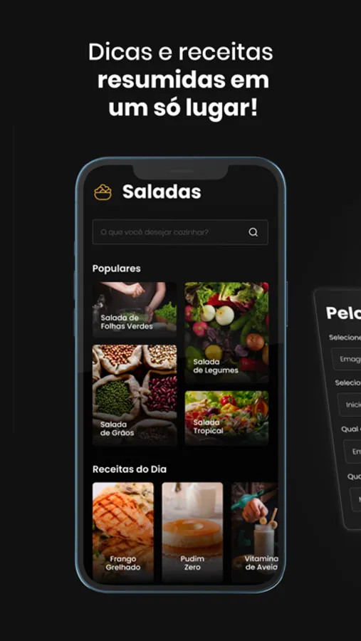 NUTRIÇÃO: Para alcançar bons resultados os exercícios físicos precisam estar alinhados a uma reeducação alimentar, este MENU auxilia o usuário nessa jornada, com informações nutricionais, dicas e receitas alinhadas a cada objetivo.
