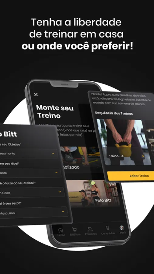 Seja em casa, na academia, na rua, em qualquer lugar o Bittrainers te acompanha e te ajuda a alcançar seus objetivos.