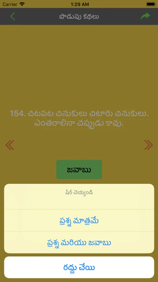 Podupu Kathalu is an app that contains list of Telugu riddles along with answers. the app is also feature to share the riddle on social platforms too.