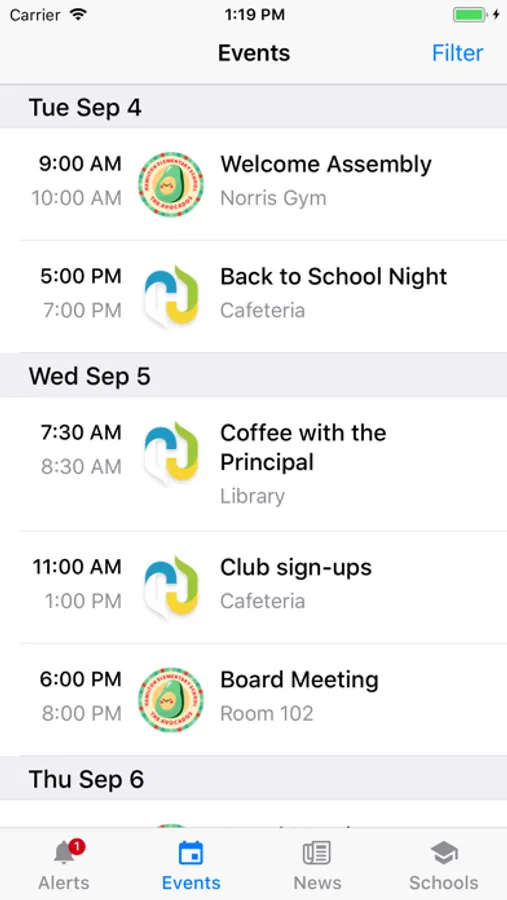 - View a calendar of events from one or more schools and use filters to see only relevant events.