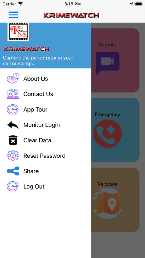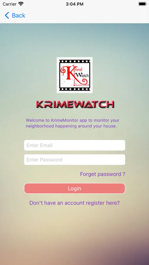 1. Install the Krimewatch app available in app store.