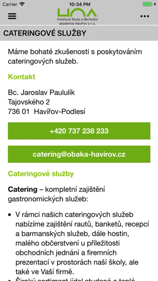 Mobilní aplikace Hotelová škola a Obchodní akademie přináší důležité informace o škole – o oborech vzdělání, kurzech či školní restauraci. Aplikace nabízí rychlé volání, psaní e-mailu nebo navigaci. Naleznete v ní také kontaktní formulář, fotogalerii, veškeré kontakty, důležité dokumenty a odkazy.