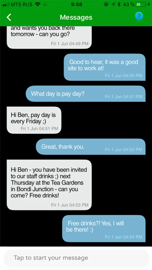 This app is for people who work for EIR. Using the app you can update your availability for work, view and accept offers of work, log your work hours through location or SMS verification, and check your work history.