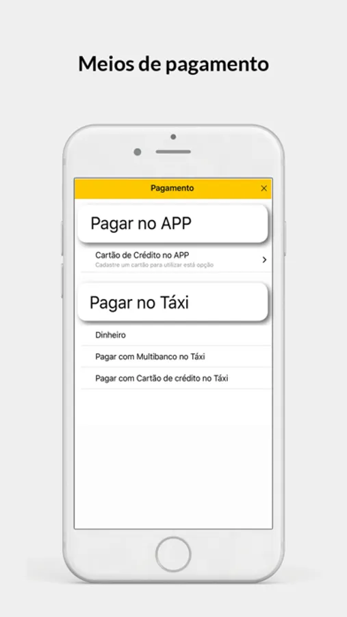 Além do tradicional pagamento em numerário, opte por pagar com qualquer cartão bancário nos táxis equipados com terminais de pagamento (inclusive com cartão de crédito na própria App)