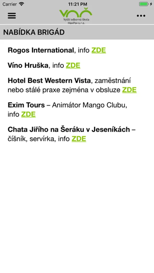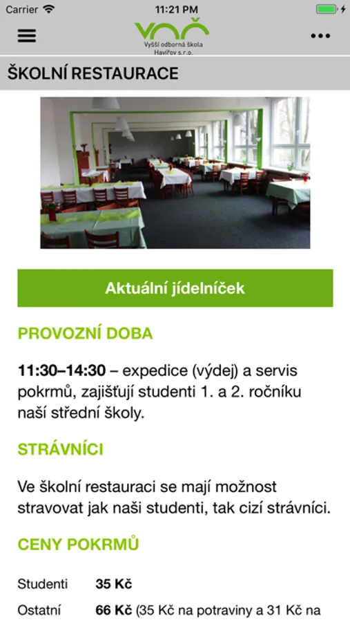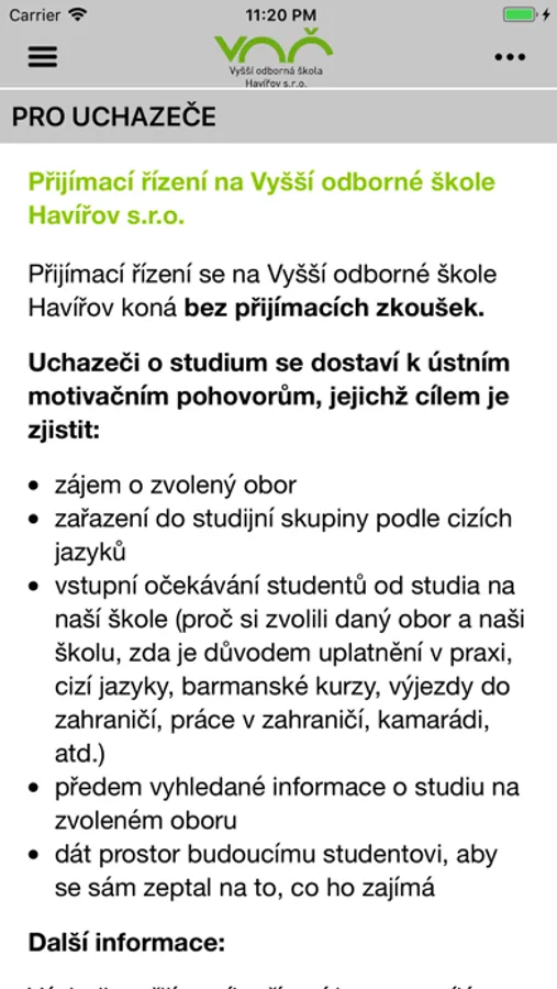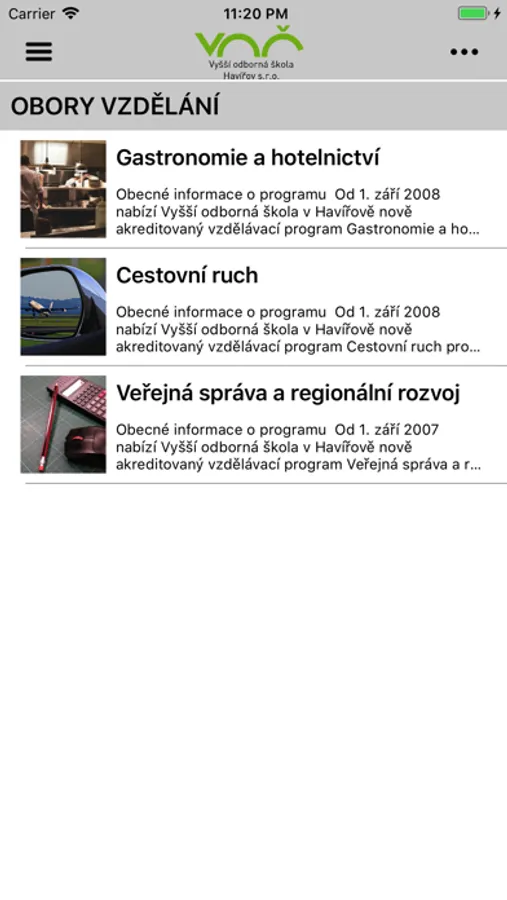 Mobilní aplikace Vyšší odborná škola Havířov přináší důležité informace o škole – o oborech vzdělání, kurzech či školní restauraci. Aplikace nabízí rychlé volání, psaní e-mailu nebo navigaci. Naleznete v ní také kontaktní formulář, fotogalerii, veškeré kontakty, důležité dokumenty a odkazy.