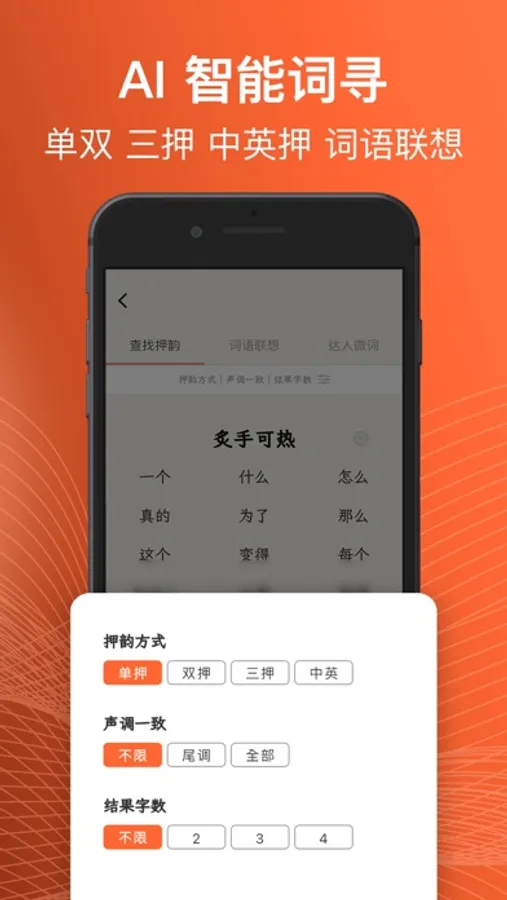 * 一键选出和当前输入词押韵的相关词联,让你作词更轻松