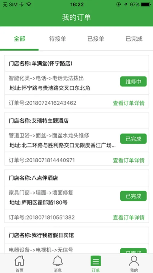 用于维修师傅接收客户报修的维修订单、导航、添加维修进度、维修材料、上传照片、语音录音、电子签名、消息推送等。