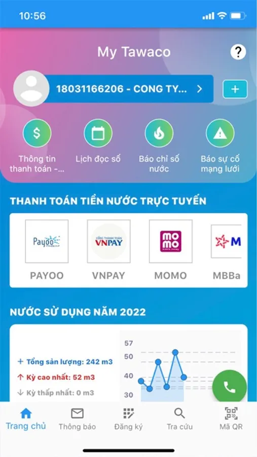 Ứng dụng phục vụ cho các khách hàng sử dụng nước tại khu vực Quận Gò Vấp (trừ Phường 1), Quận 12 và Huyện Hóc Môn, Thành phố Hồ Chí Minh, tra cứu các thông tin bao gồm: