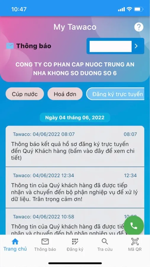 - Nhận các thông tin về dịch vụ cấp nước như: tạm ngưng cung cấp nước, thanh toán hóa đơn, lịch ghi chỉ số nước...