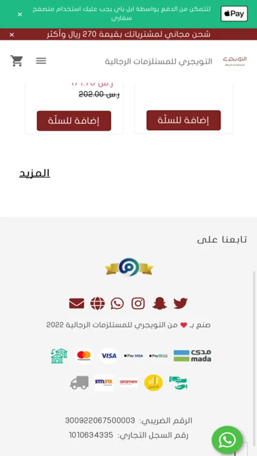 *الشحن مجاني للمشتريات بأكثر من ٥٠٠ ريال