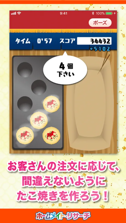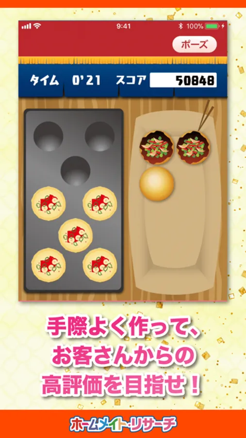 たこ焼きを制限時間内に焼いていく