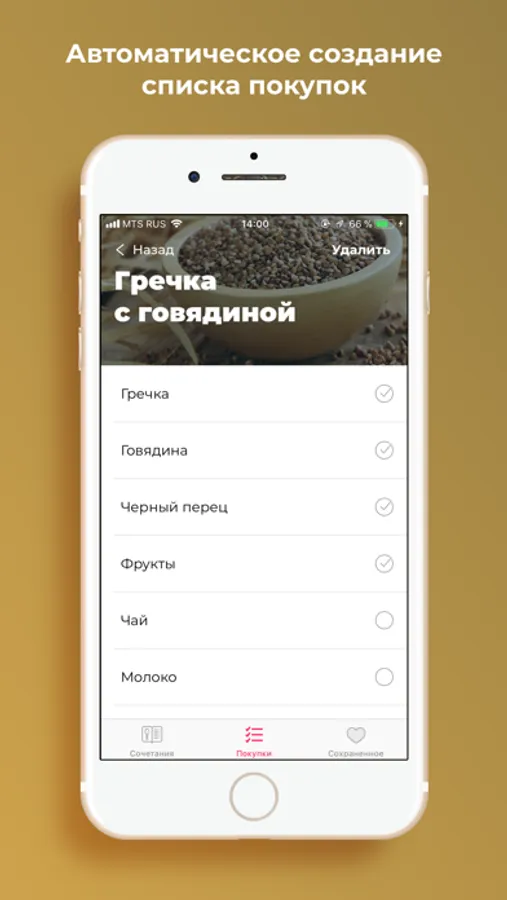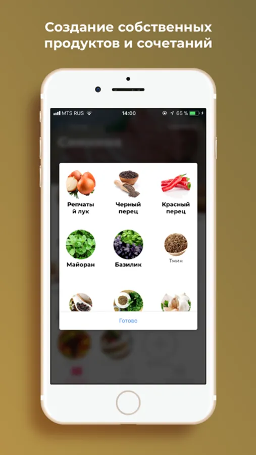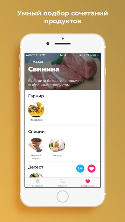 В приложении есть готовая база данных с продуктами, для которых вы можете подбирать сочетания. Просто выберите нужный продукт из списка, и система сама предложит вам, что приготовить!