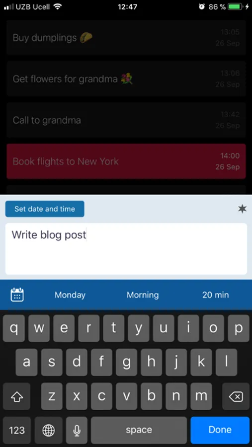 You can mark a task as done or post it right on the locked screen without starting the app.