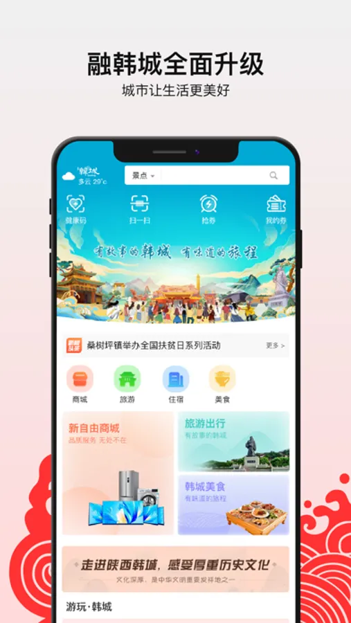 融韩城app是韩城米悦智能科技有限公司推出的专门为本地人民推出的一款在线服务软件,用户们可以在这里了解到最新资讯,商城购物、旅游住宿、美食等都能在这里进行。选择入住的时间和日期,迅速就搜索附近的酒店资源,对比房源的价格、环境、设施等条件即可助力您找到实惠的酒店,线上就能迅速预订房间,解决你的住宿需要。