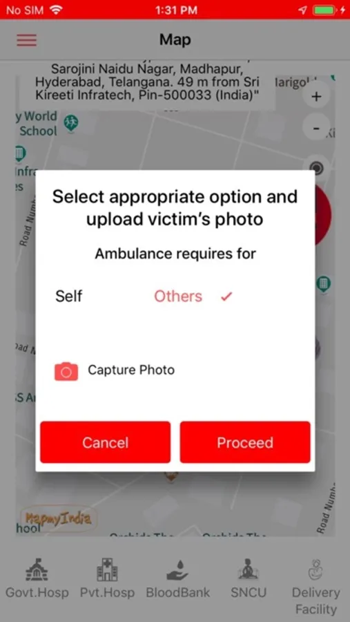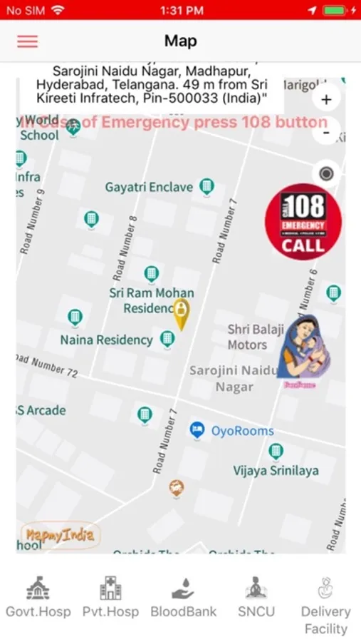 5) On calling, user’s current position along with registration details will be transmitted at 108 Emergency Response Centre where the 108 associate will be able to see user’s current position in Google maps and on requirement can send nearest ambulance.