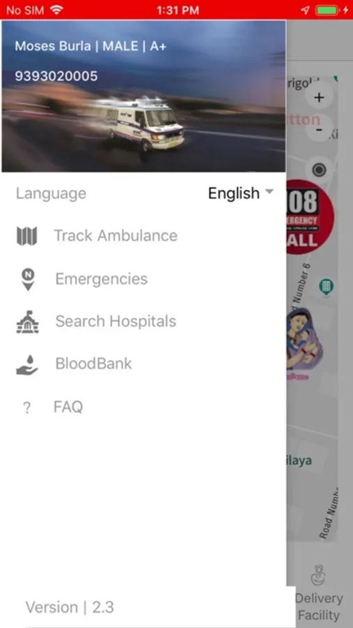 4) The user can then call on 108 helpline number by clicking on the 108 button.