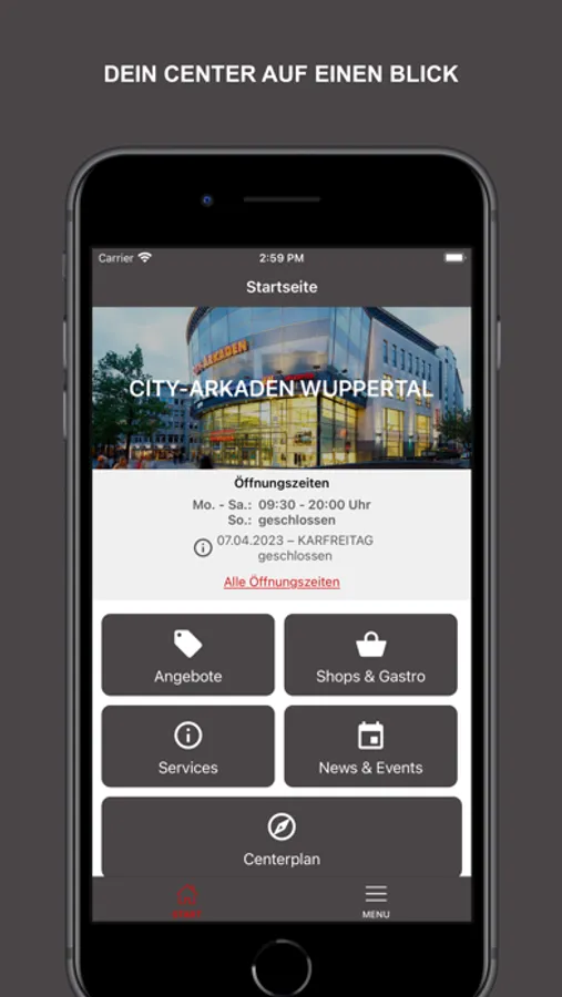 • Der interaktive Centerplan hilft Ihnen beim Finden der Shops und Gastrobetriebe im Center und zeigt Ihnen auch gleich alle Öffnungszeiten und Kontaktdaten auf einen Klick.