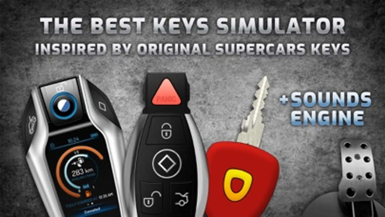 In the application you will find keys and engine sounds inspired by cars such as: