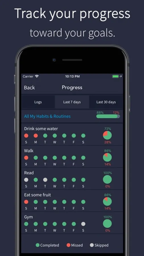 Calculate streaks and see your progress with meaningful and comprehensive statistics.