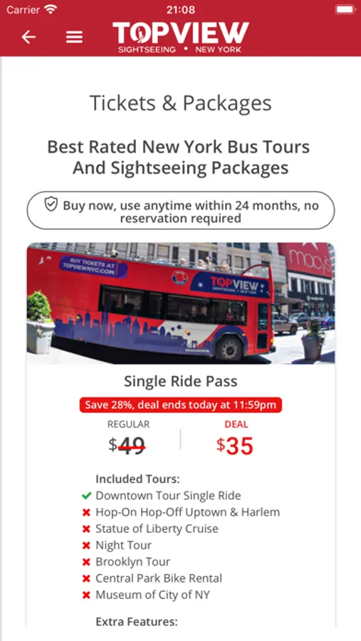 Our app lets you redeem your TopView® tickets, access our large fleet of double decker buses which stop at major NYC attractions, check live bus arrival status, and make reservations.
