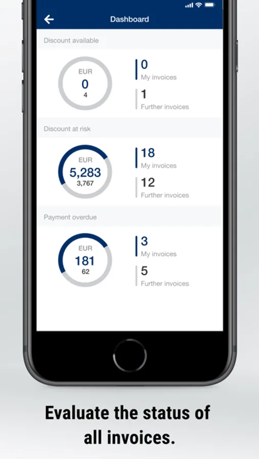 • personal dashboard with warnings: invoices and receipts overdue, imminent cash discount losses, price increases