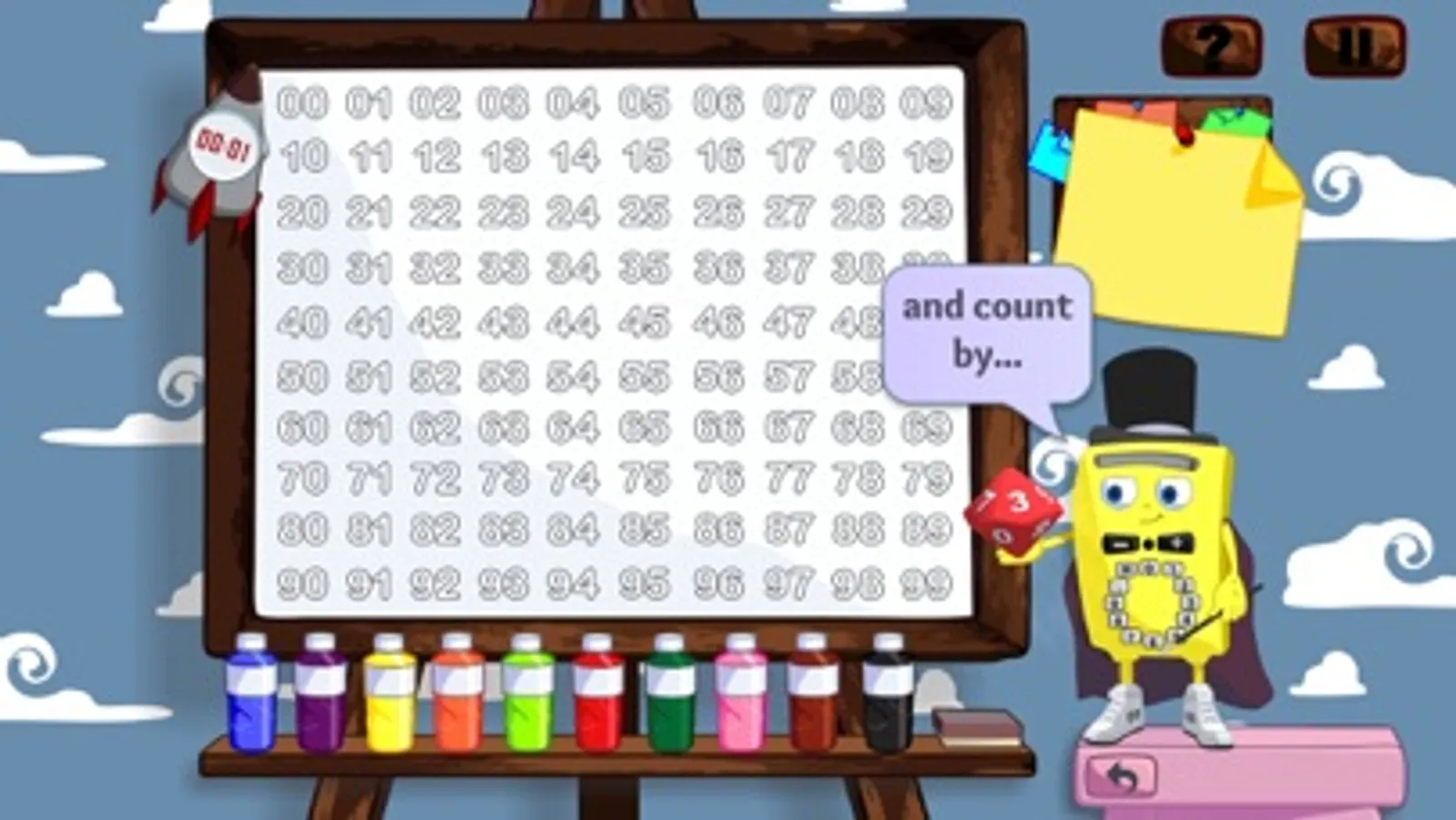 The Human Calculator Matrix is a 10 x 10 number grid from 00 - 99. After you select a color for each of the 10 digits 0 - 9, Cal will teach you addition and subtraction facts and show you how to move through the matrix to figure out the answers. You will also learn the ’secret to numbers’ and the power of the number 9.