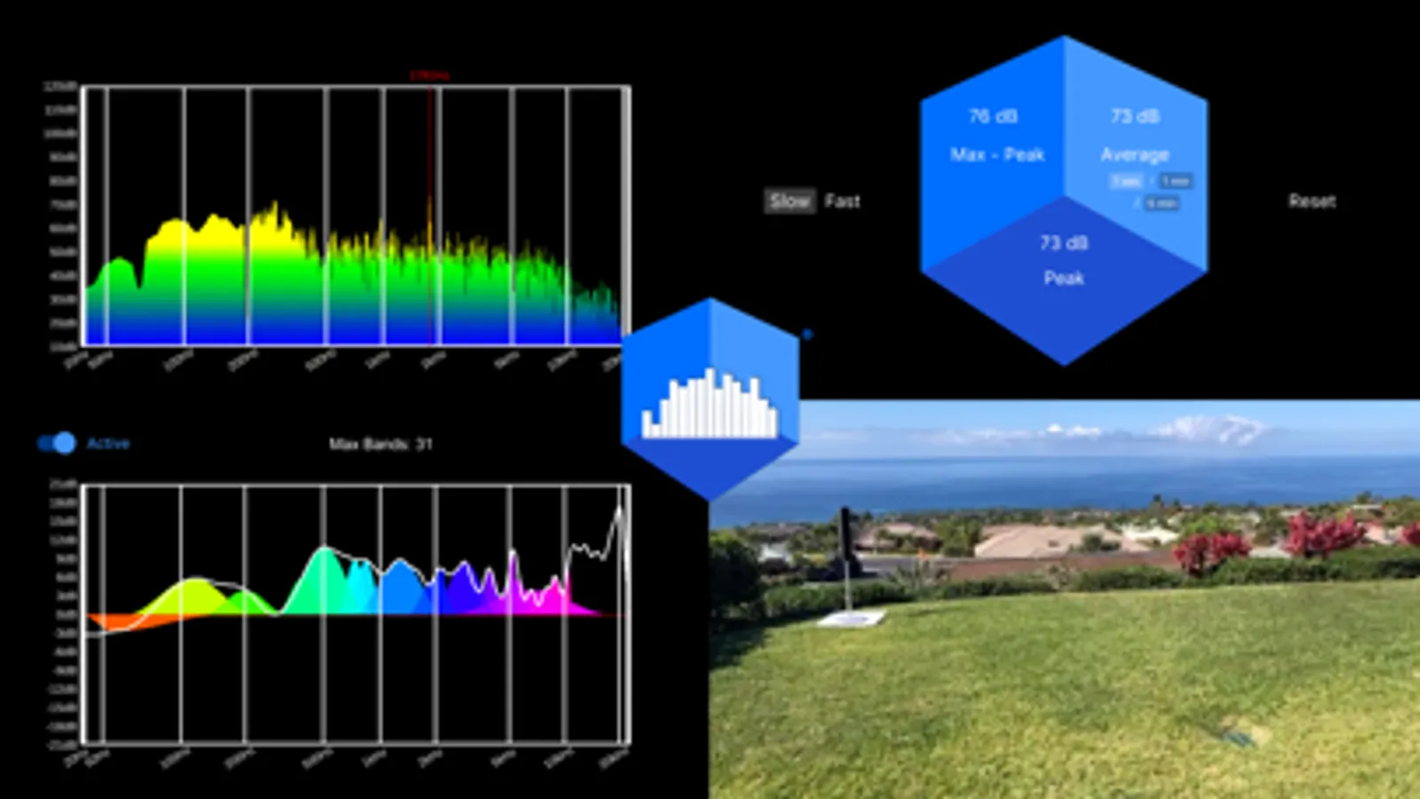 AcoustiTools’ innovative design simultaneously displays four active modules. This breakthrough feature allows you to view information from multiple modules at once and quickly select a module to interact with.