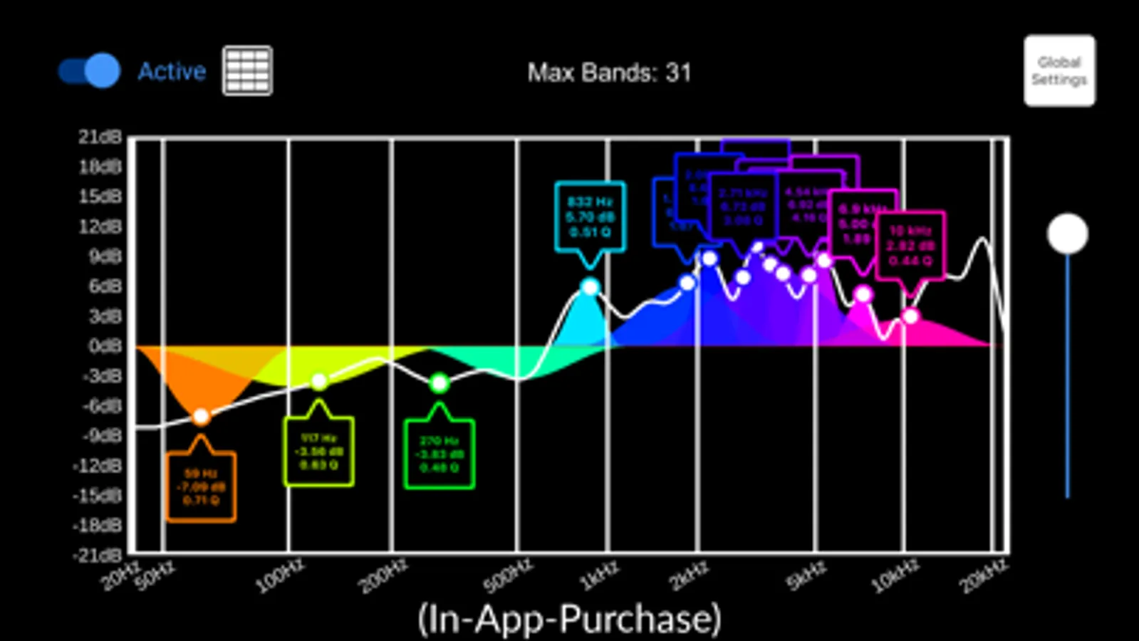 Available through in-app-purchase, the revolutionary Graphic EQ (GEQ) module diagnoses your audio and recommends a corrective EQ curve making it easy to get the most out of your audio system.