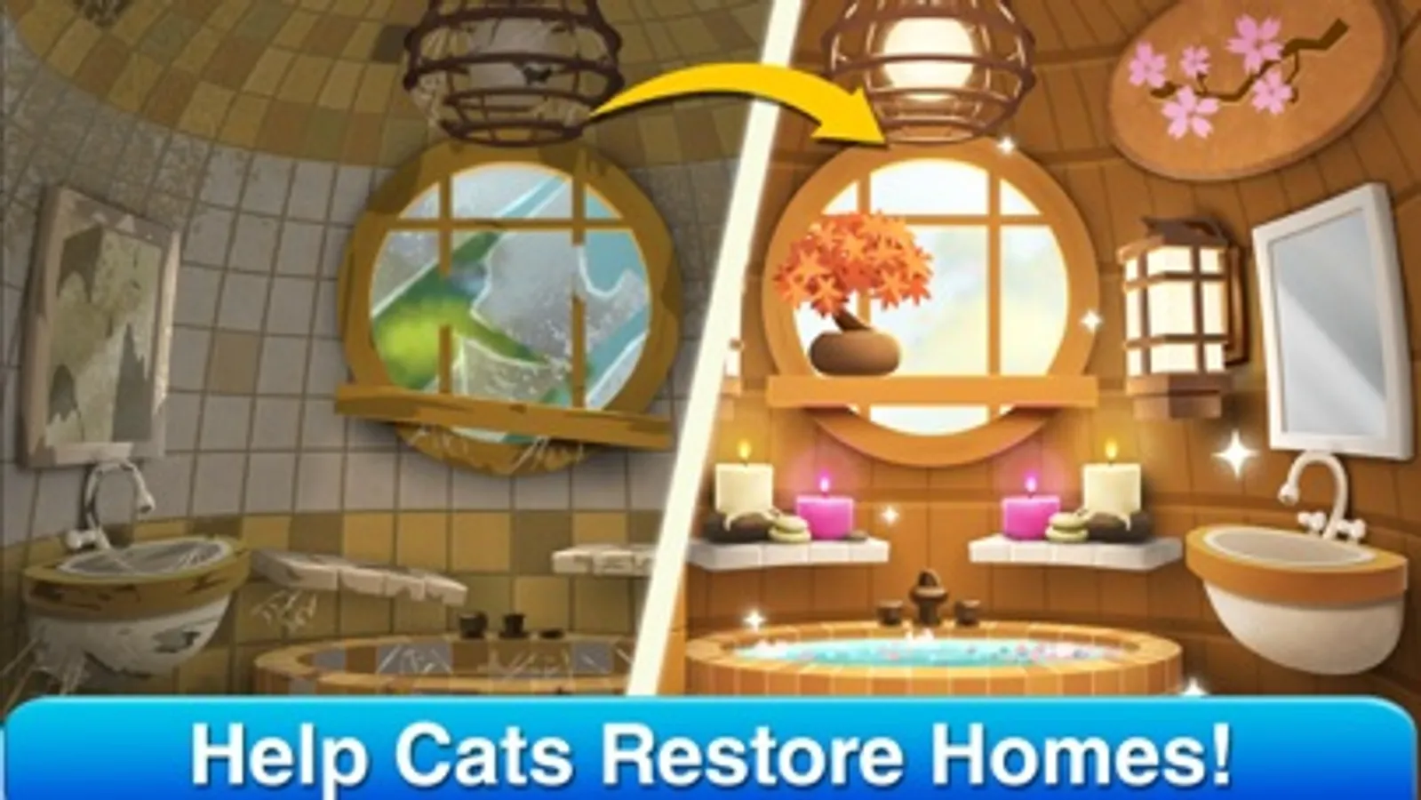 • Earn bonus rewards when you complete restoring, renovating & decorating cat homes