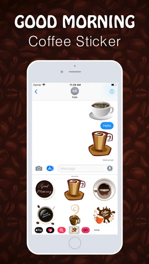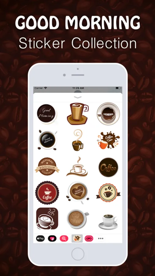• Tap the icon on the lower left corner and then the plus icon to access the App Store for iMessage. Tap Manage tab and find Good Morning Coffee sticker to add it.